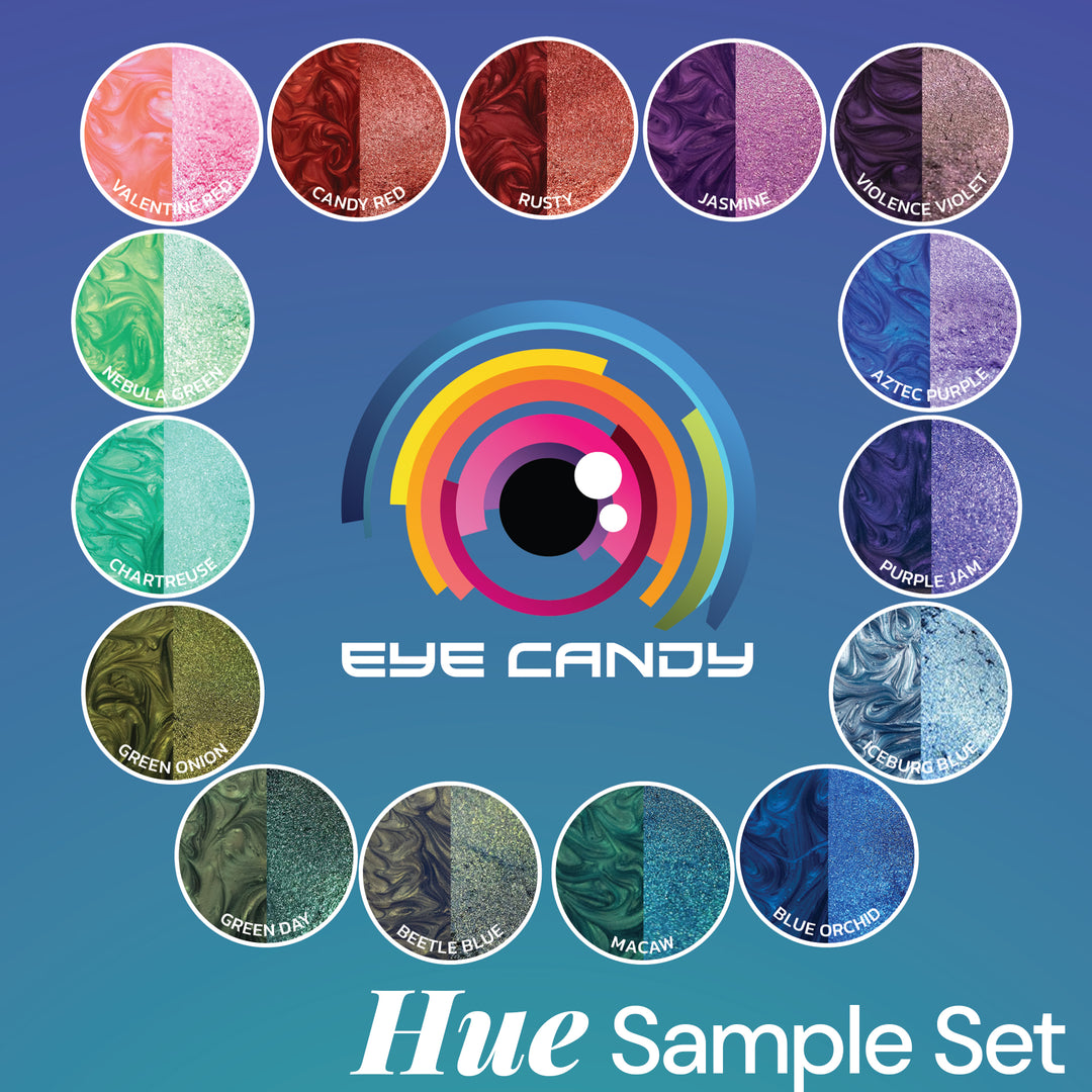 Have you just gotten into using mica powders to enhance your artistic projects? If so, then shop at Eye Candy for a 15-color mica sample pack. With these packs, you’ll have a set of our most popular colors to easily beautify your creations. Browse our collection to best decide which one of our 15-pack pigment samples has the colors you need. We have great options like our Ghost pigments, black/brown/white set, and Hue Series.
