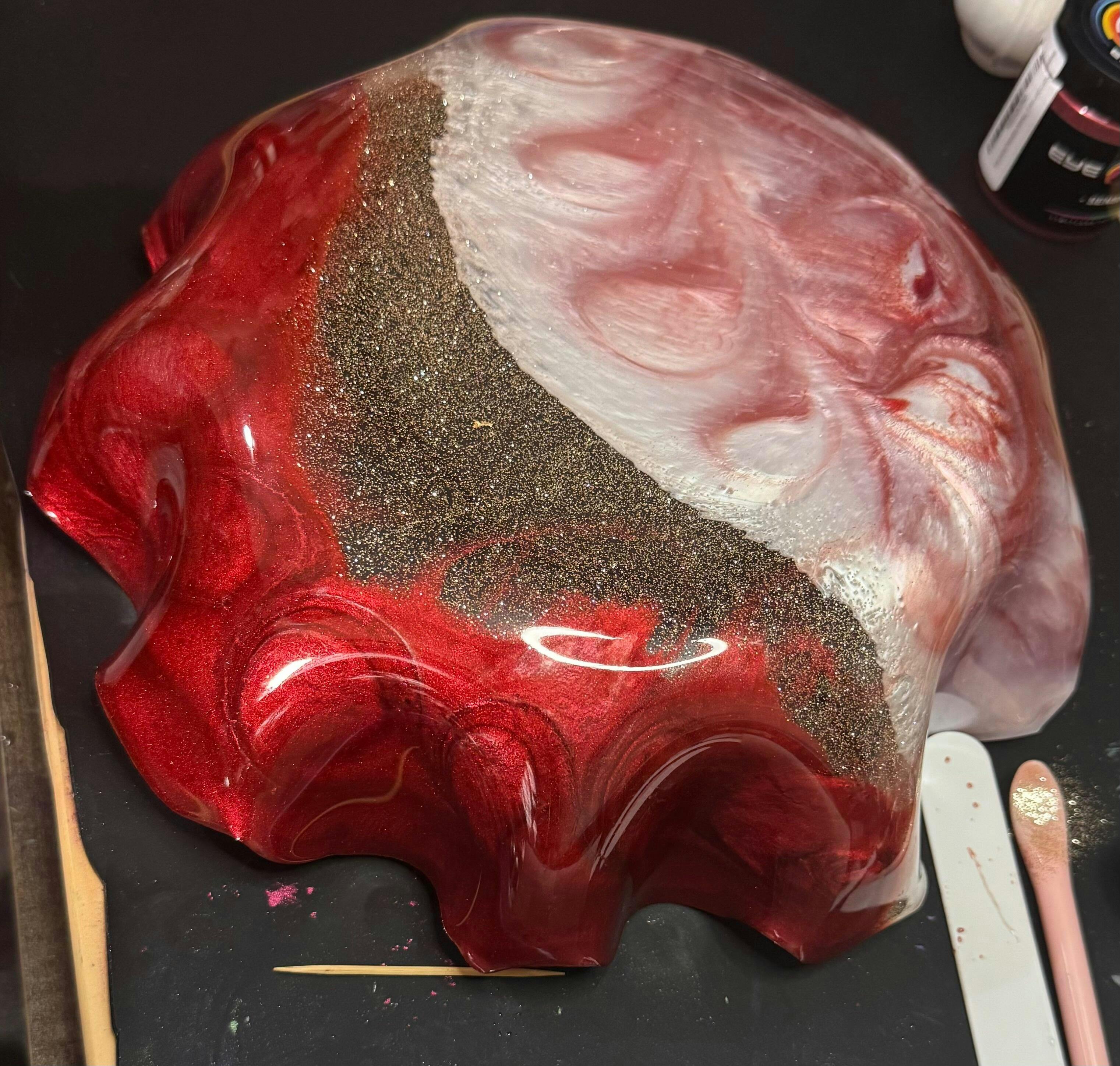 Be aware that larger micron sized pigments will most likely have a heavier density which will cause the pigment to sink faster in fresh epoxy such as deep pours. For example, our Icicle or 14k Nugget Gold is 200-700um and will most likely sink in fresh epoxy faster. To alleviate sinking either let the epoxy settle up a little bit. Or, come back through your project to “stir” it a little more.