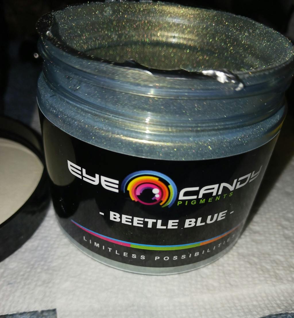 I bought this color because it was so unique. It's grungy green blue with gold highlights. Quality and pigmentation is excellent as always with Eye Candy pigments. I actually am gonna use this in some beetle and scarab molds that I bought lol.