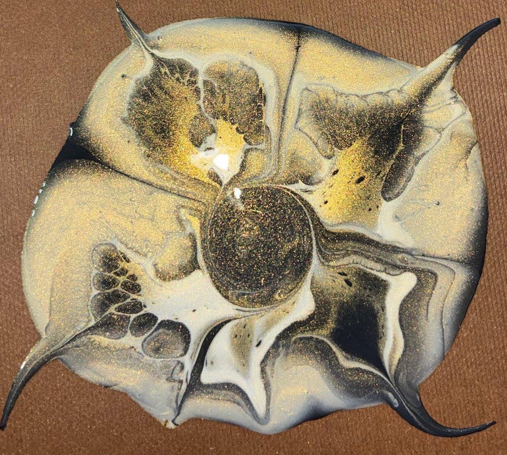 Fell in love with Beetle Blue and had to buy more. I don't necessarily see any blue, but the gold in this color is spectacular! I attempted to capture the stunning gold, but it's definitely a must see in person! Another color that works great in my fluid art.