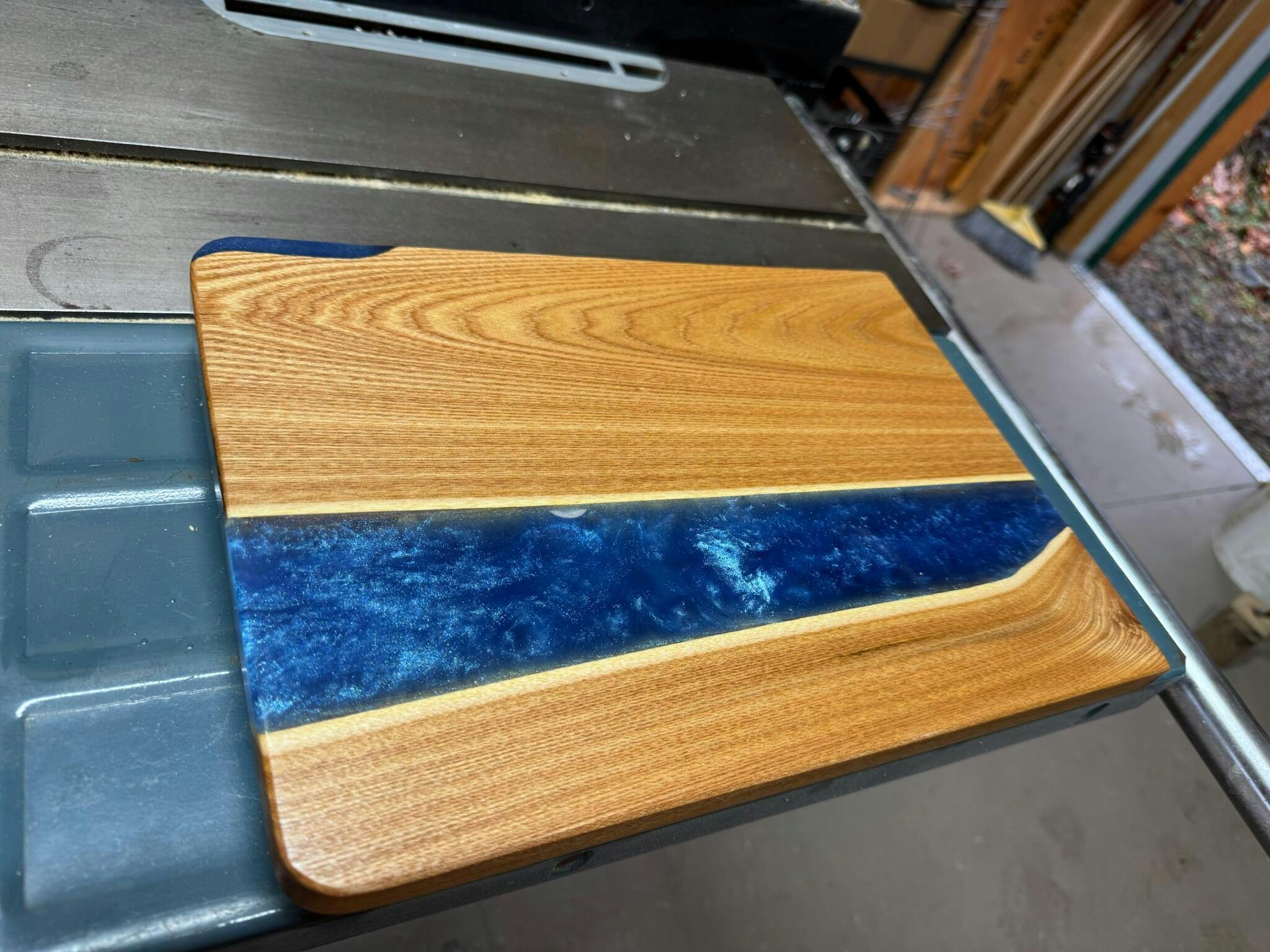I am making hybrid cutting boards for Christmas. I used the sample kit to see what colors will work for friends and family. Let me tell you that these colors shift really well over a large space, and make for something interesting to look at. I am always impressed with the colors you guys offer. Such an amazing product. (The resin was just poured, and wood floats.)