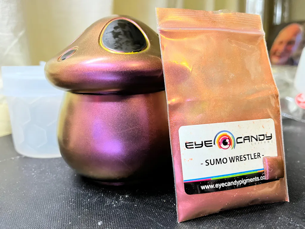 Sumo Wrestler is a beautiful Orange to Violet colorshift pigment. Our popular colorshift mica powder is ideal for DIY craft use, such as, epoxy, resin, woodworking, pen blanks, plastics, slime, watercolors, cosmetics, fishing lures, bath bombs, jewelry, melt and pour, lip balm, acrylic, polish, candle making, automotive paint, and MUCH more.