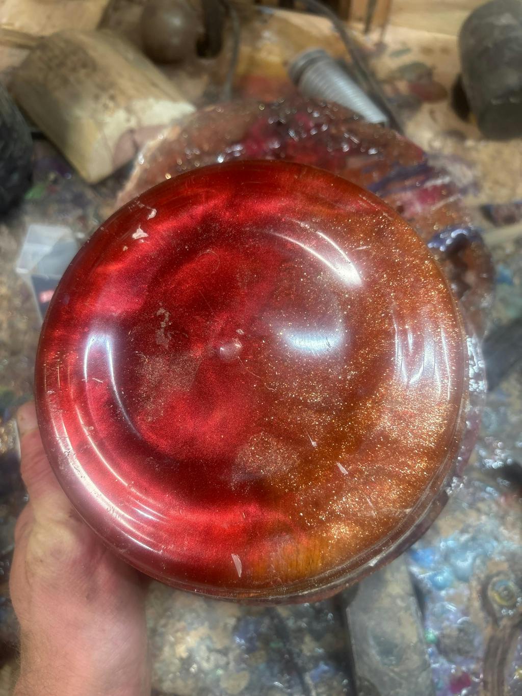 I’ve always loved the way bronze and copper look in epoxy. This color from yall once again ups the ante. It’s really cool stuff. Don’t have anything finished yet but I’ve got a bowl started and I love the way it’s mixing with the akai tsuki red I used with it. Thanks yall!